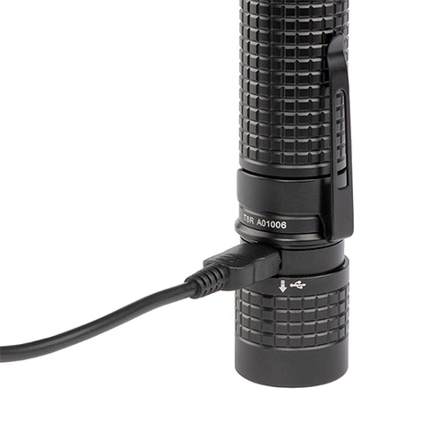 What’s included: Inova T8R flashlight, rechargeable battery, USB cable and pocket clip (AC-wall charging plug sold separately)