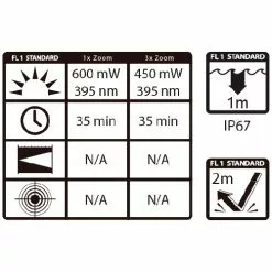 What’s included: Maxxeon WorkStar® 364 UV rechargeable penlight, rechargeable battery, pocket clip and USB cable