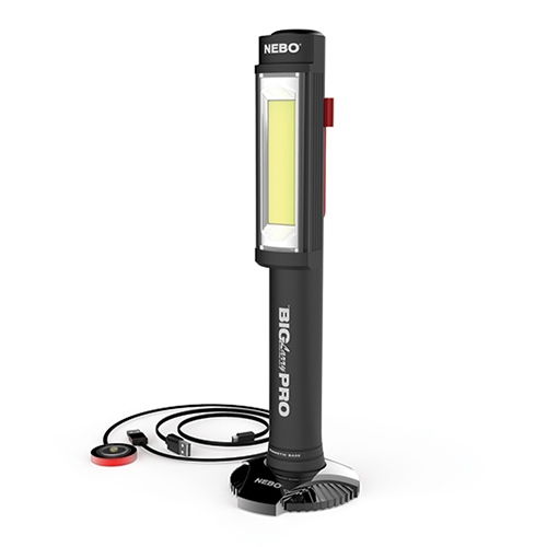 What’s included: NEBO BIG Larry Pro, rechargeable battery, 2 magnetic chargers, USB cord (plug adapters not included)