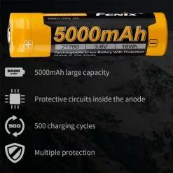 Features of Fenix ARB-L21-5000 Rechargeable 21700 Li-ion Battery: