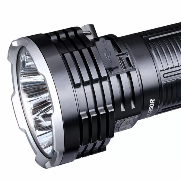What’s included: Fenix LR50R flashlight, rechargeable battery, USB-C cable, nylon holster, shoulder strap, wrist lanyard (charging plug adapters available separately – see accessories below)