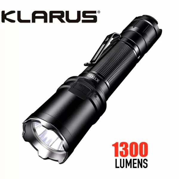 What’s included: Klarus XT11R flashlight with pocket clip, rechargeable battery, USB-C charging cable, wrist lanyard, and spare O-ring (charging wall plug adapter available separately – see accessories below)