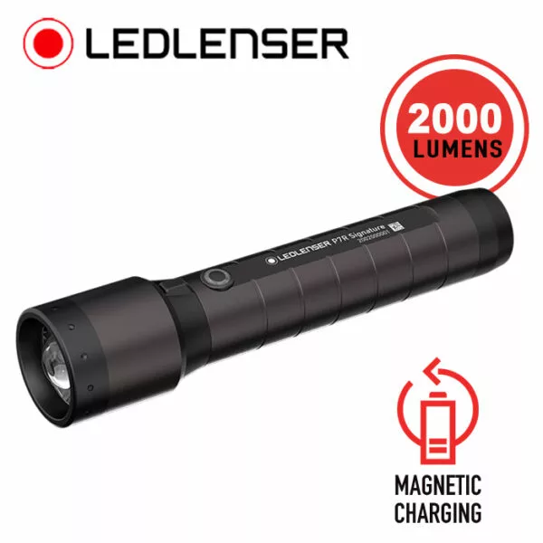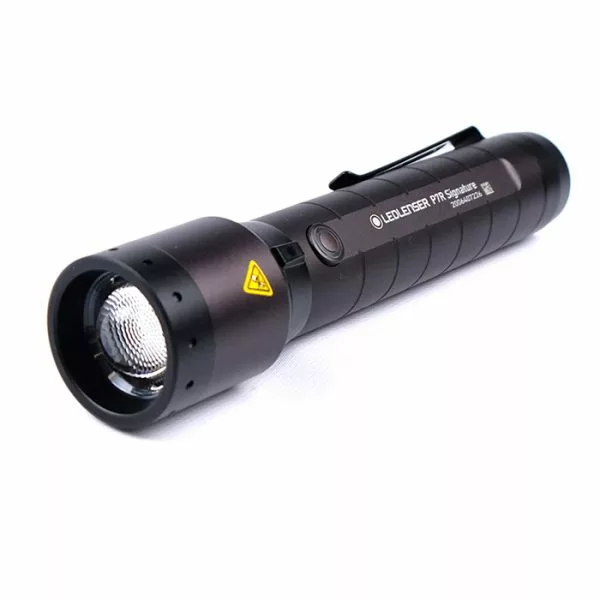 What’s included: LED Lenser P7R Signature flashlight, rechargeable battery, mounting bracket, magnetic charge cord with AC-wall adapter, leather belt holster, pocket clip and wrist lanyard