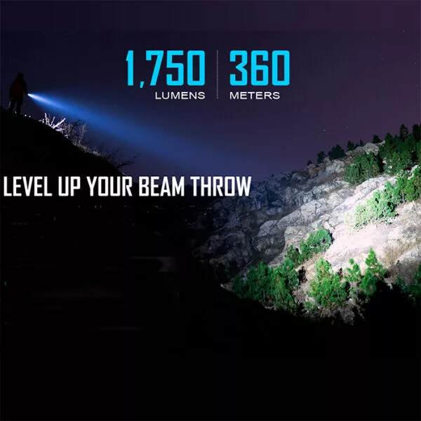 ☼ High – 1750 lumens, 2 minutes; 850 lumens, 150 minutes; 300 lumens, 28 minutes