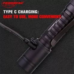 What’s included: Powertac® E11-G2 flashlight, rechargeable battery, reversible pocket clip, USB-C cable, wrist lanyard, spare O-ring and spare charging port cover (wall plug charging adapter available separately – see accessories below)