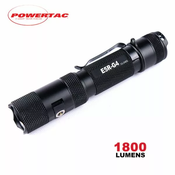 Features of the Powertac® E5R Gen 4 Rechargeable Flashlight: