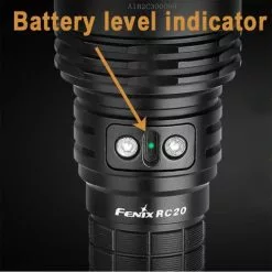 What’s included: Fenix RC20 flashlight, rechargeable battery, AC-home charger (with US style plug), nylon belt holster, wrist lanyard, spare O-ring