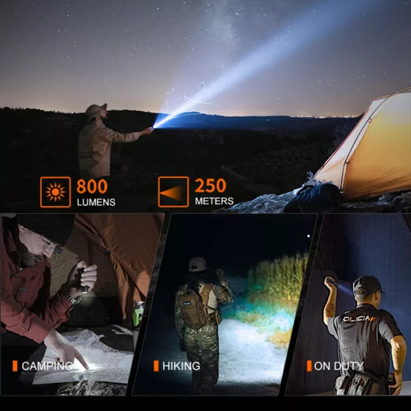 ☼ Turbo – 800 lumens, 44 minutes, 250 meters