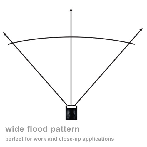 • wide lighting pattern is especially good for work applications