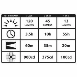 ☼ Low – 13 lumens, 55 hour runtime