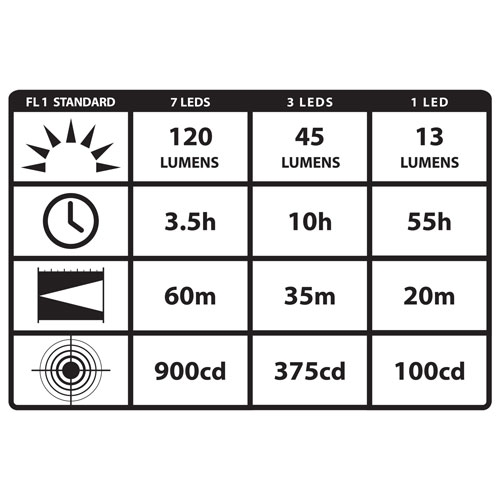• 3 brightness levels with a wide lighting pattern
