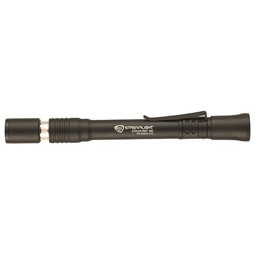 What’s included in the box: Streamlight Stylus Pro 360 flashlight, two AAA alkaline batteries, pocket clip, nylon belt holster, and lanyard.