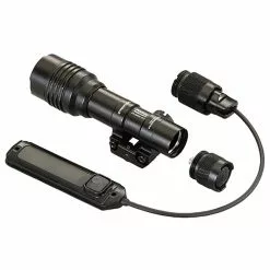 What’s included: Streamlight ProTac Rail Mount 2 light with integrated mount, pushbutton tail switch, remote pressure switch, remote retaining clips, double-sided tape, zip ties, and two CR123 lithium batteries.